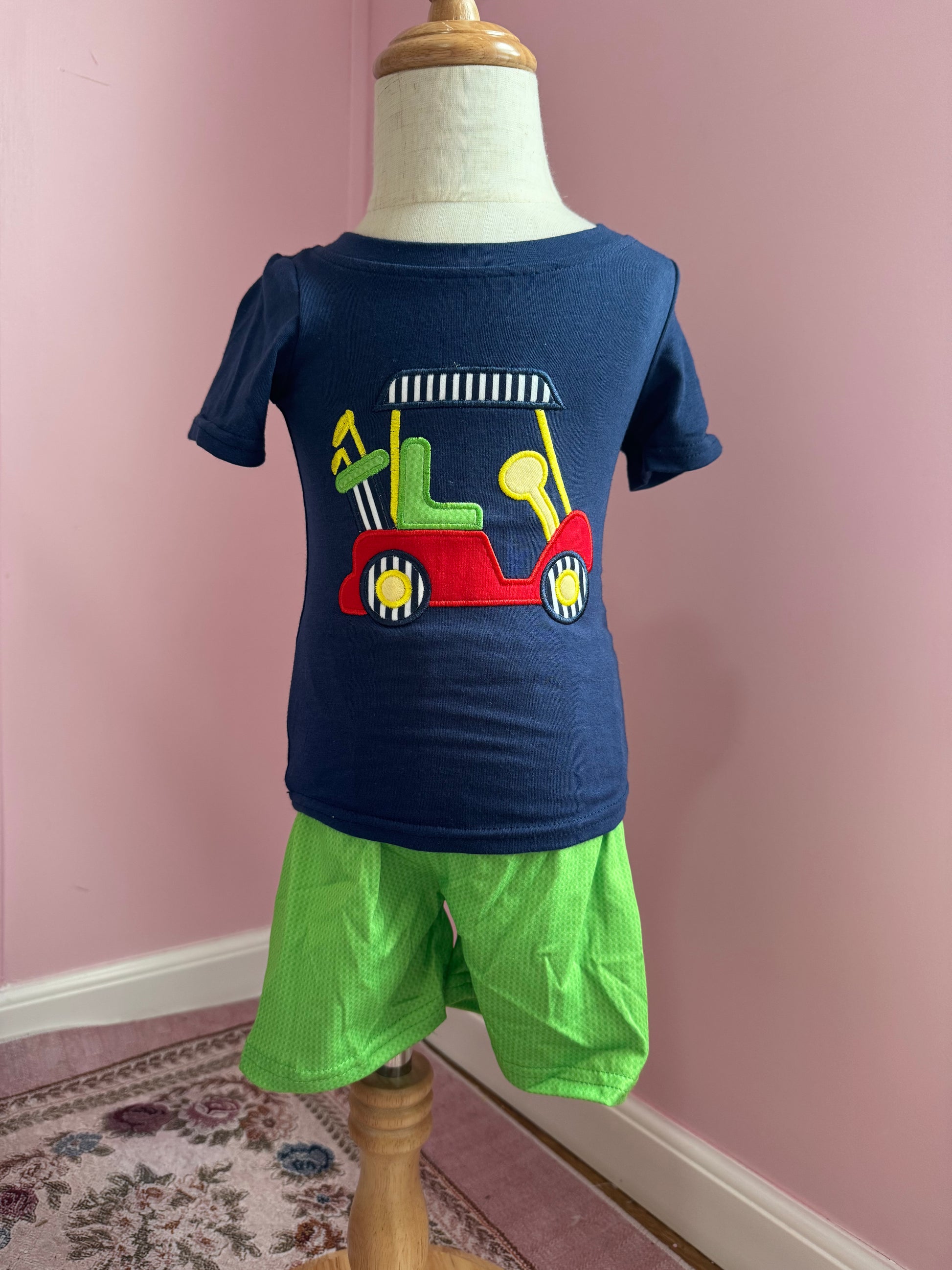 Get your little one ready for a day on the course with Par-tee, the perfect mini golfer outfit for your son. Featuring an embroidered golf cart, he'll be the talk of the green. Fore!