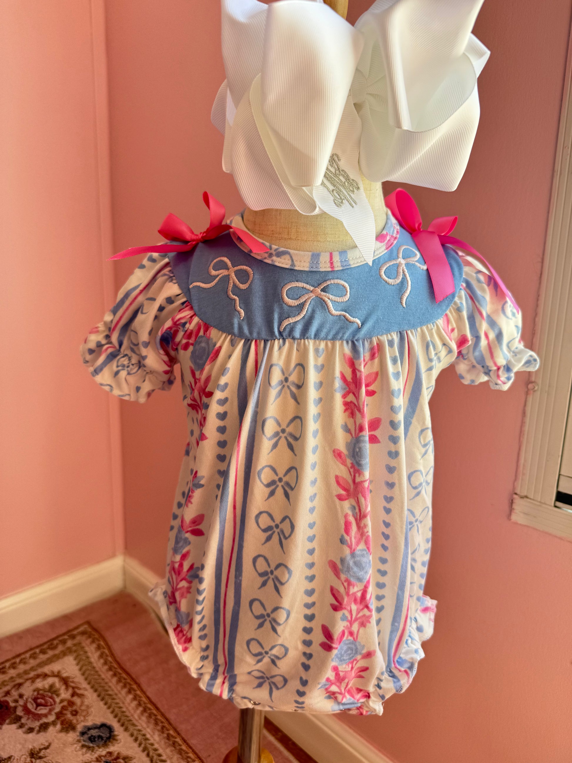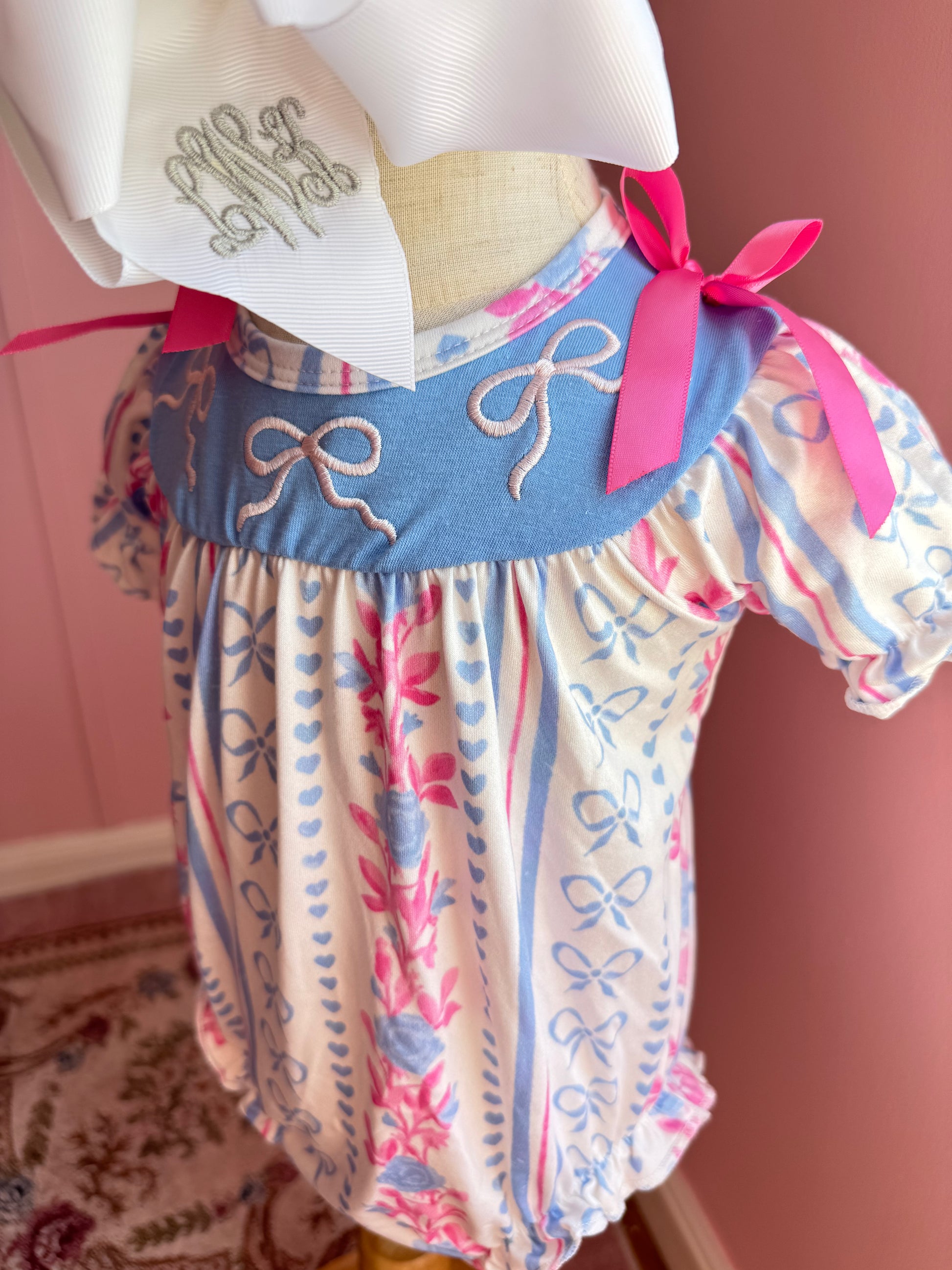 Experience pure bliss with our Pink and Blue Girl Bubble! Featuring adorable bow details, this bubble will keep your little one stylish and comfortable. Perfect for everyday wear or special occasions, our bubble is sure to bring joy and excitement to your little girl's wardrobe.