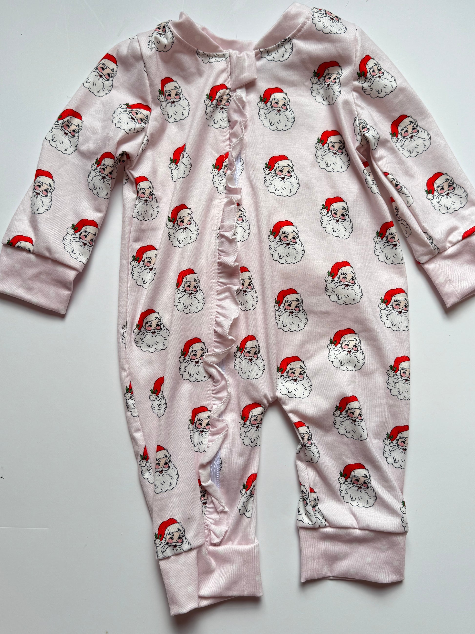 Get into the holiday spirit with our Santa pajamas in a classic baby pink color. Made with soft and comfortable fabric, these pajamas are perfect for snuggling up on Christmas morning or for a festive family photo. Spread holiday cheer while staying cozy and stylish in our Santa baby pajamas.