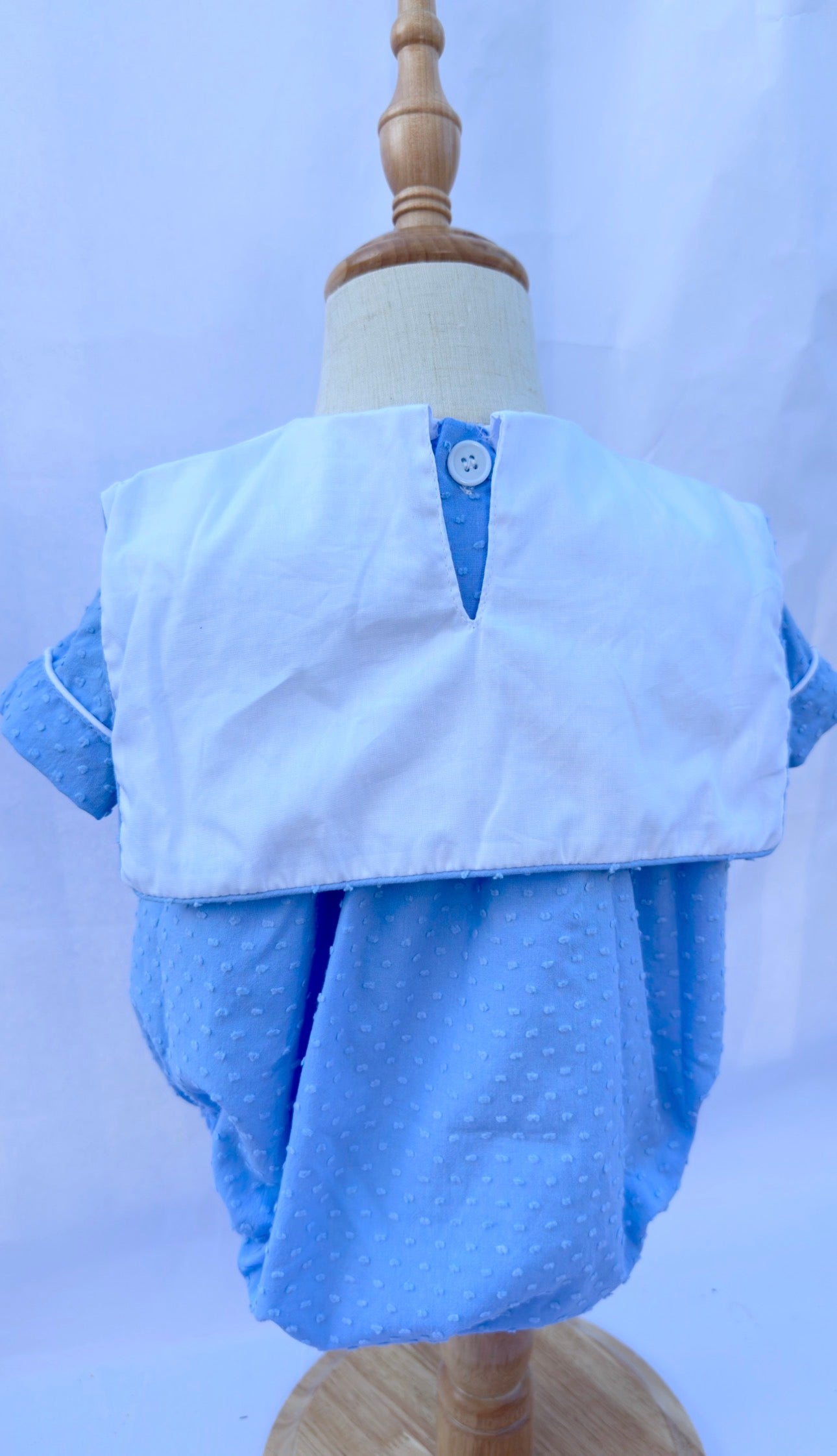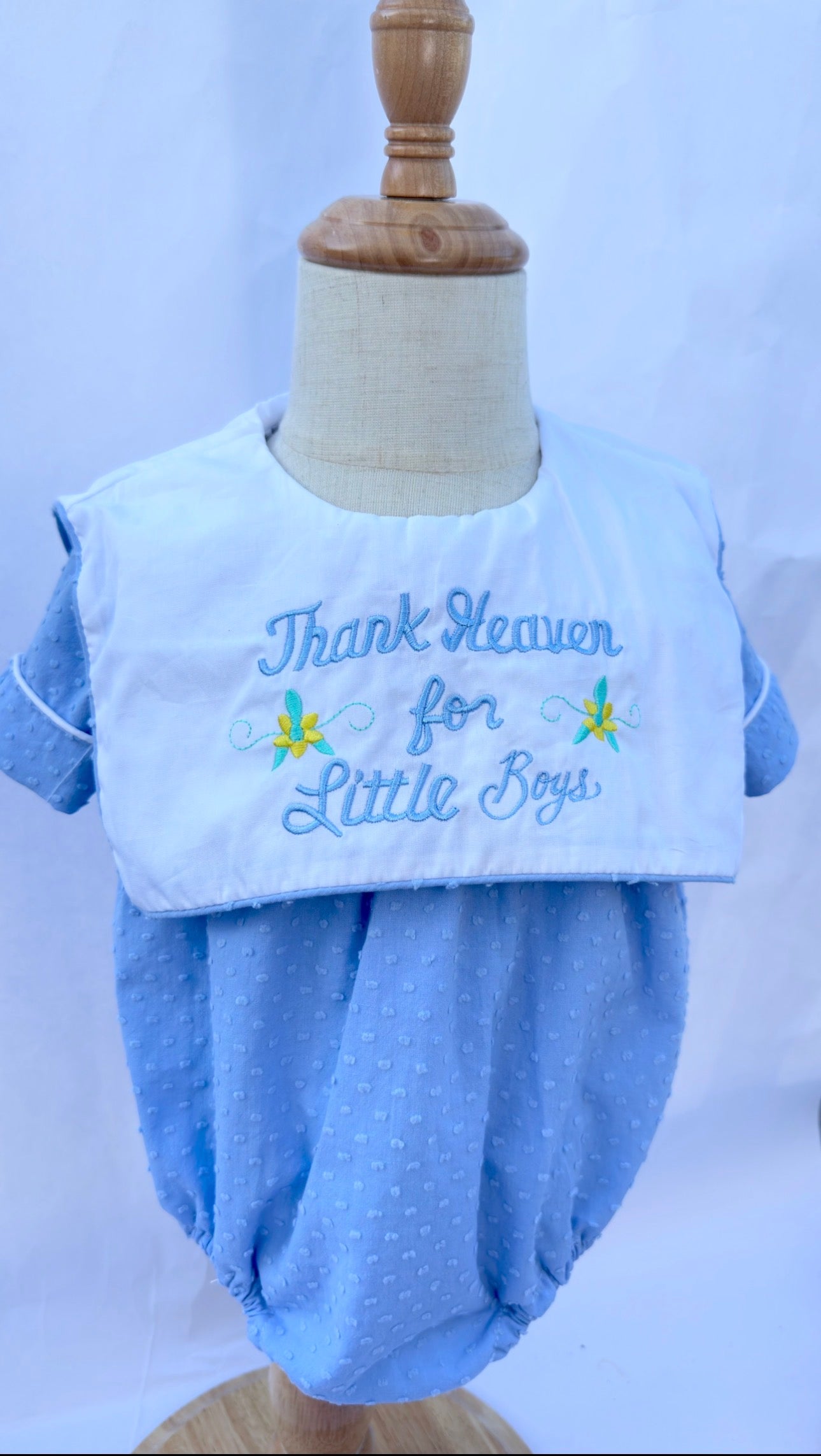 The most precious Swiss dot bubble with an apron bib. It has a retro themed embroidery style with delicate colors. This outfit would be precious for pictures, church, or dedication!