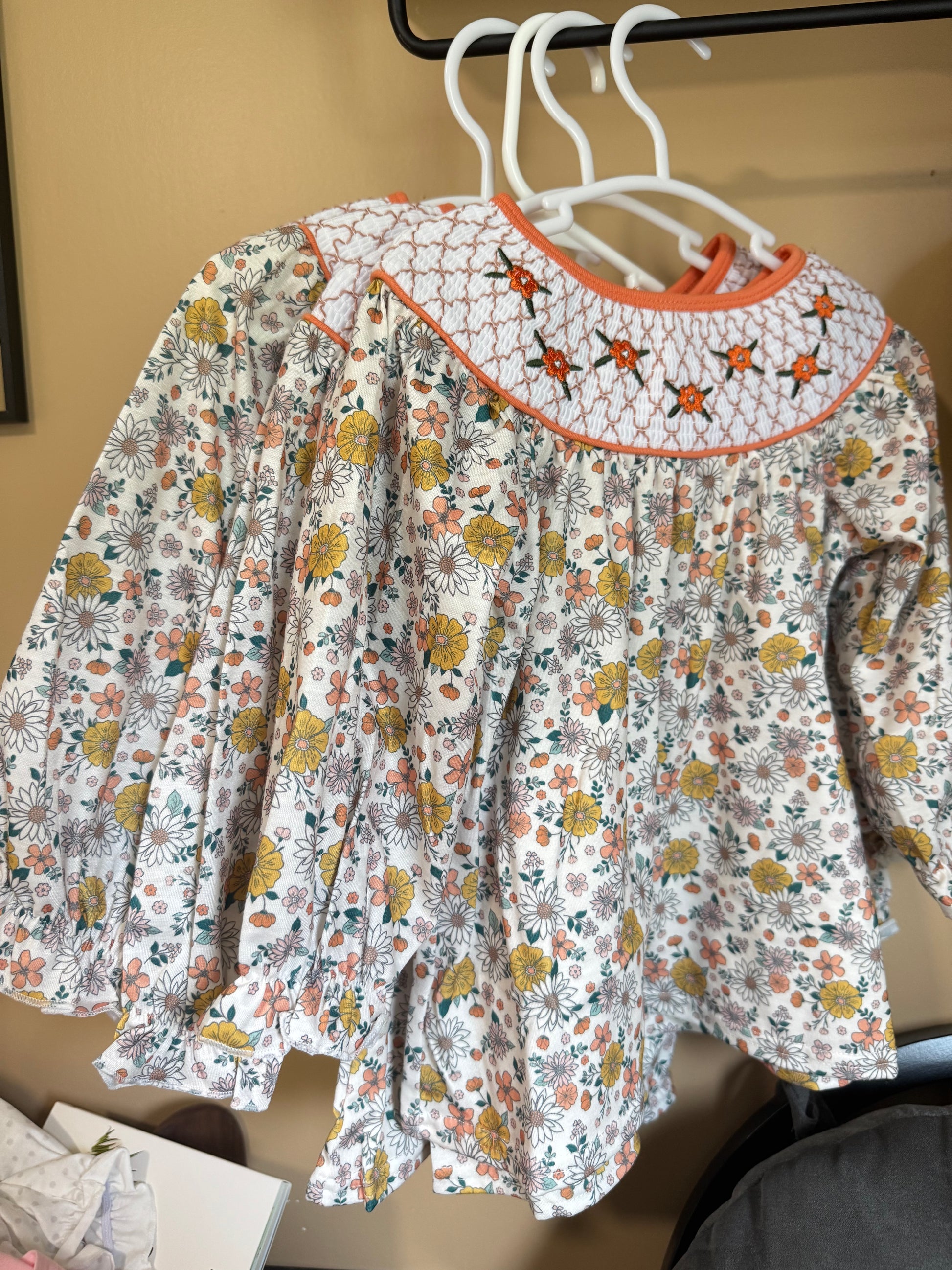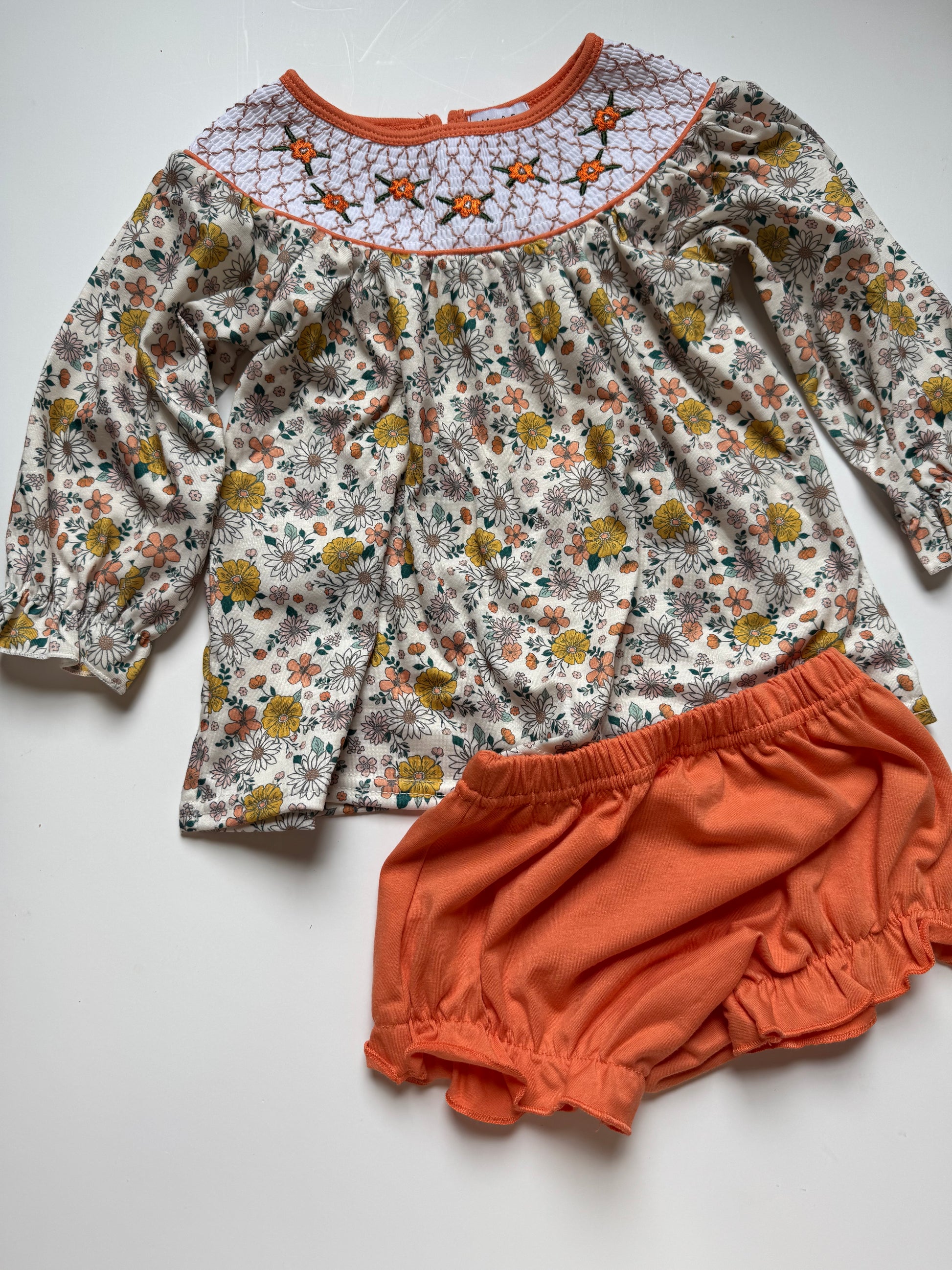 Introducing Fall Blooms - a must-have for this season! Our beautiful smocking plate adds perfect details to this floral diaper set. With sweet colors and perfect for any activity, this is a fall staple that will keep your little one stylish and picture perfect.